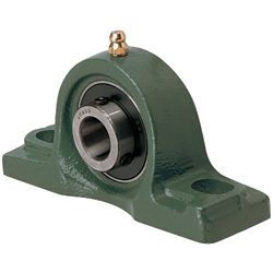 Standard model number. Bearing box with a sturdy integrated structure and inserted bearing. Used with a wide range of transmission equipment. Cast iron series