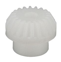 Duracon® material (M90-44), precision JISB1704 grade 6 molded bevel gear. Low-cost injection molded gear with sizes M0.5 to 1. Oil-less bush is also available when using it with a diameter smaller than the inner diameter.