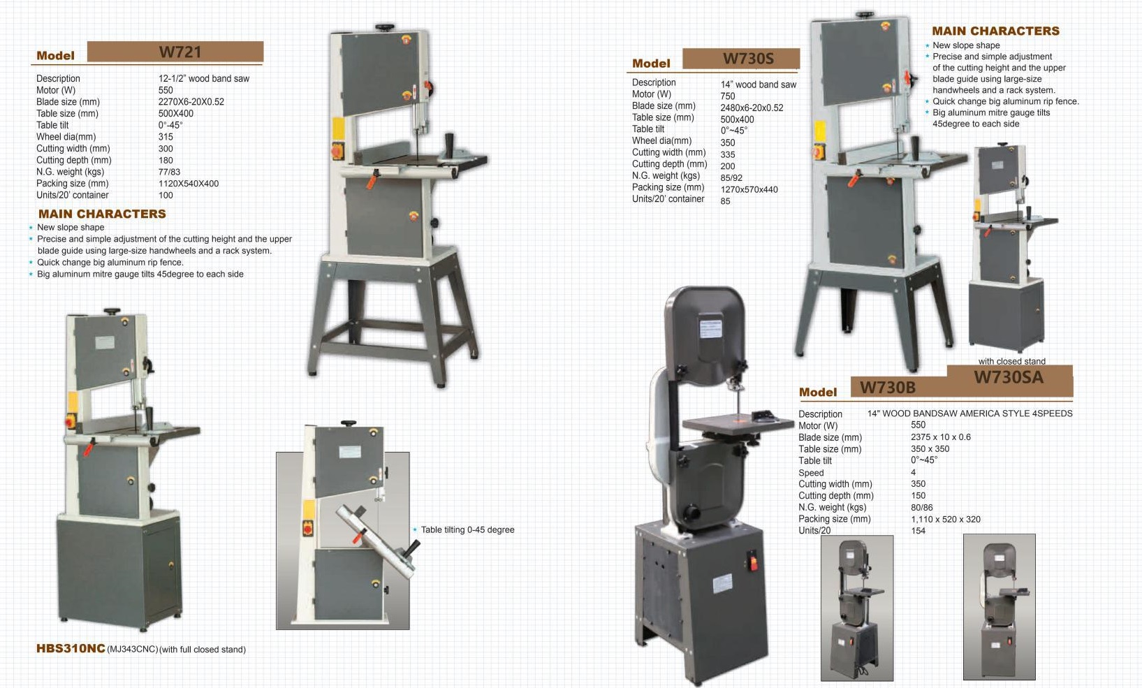 Woodworking bandsaws – Các loại máy cưa gỗ đứng W715Q W721Q W730Q W740Q