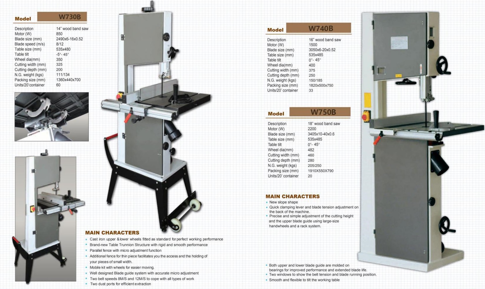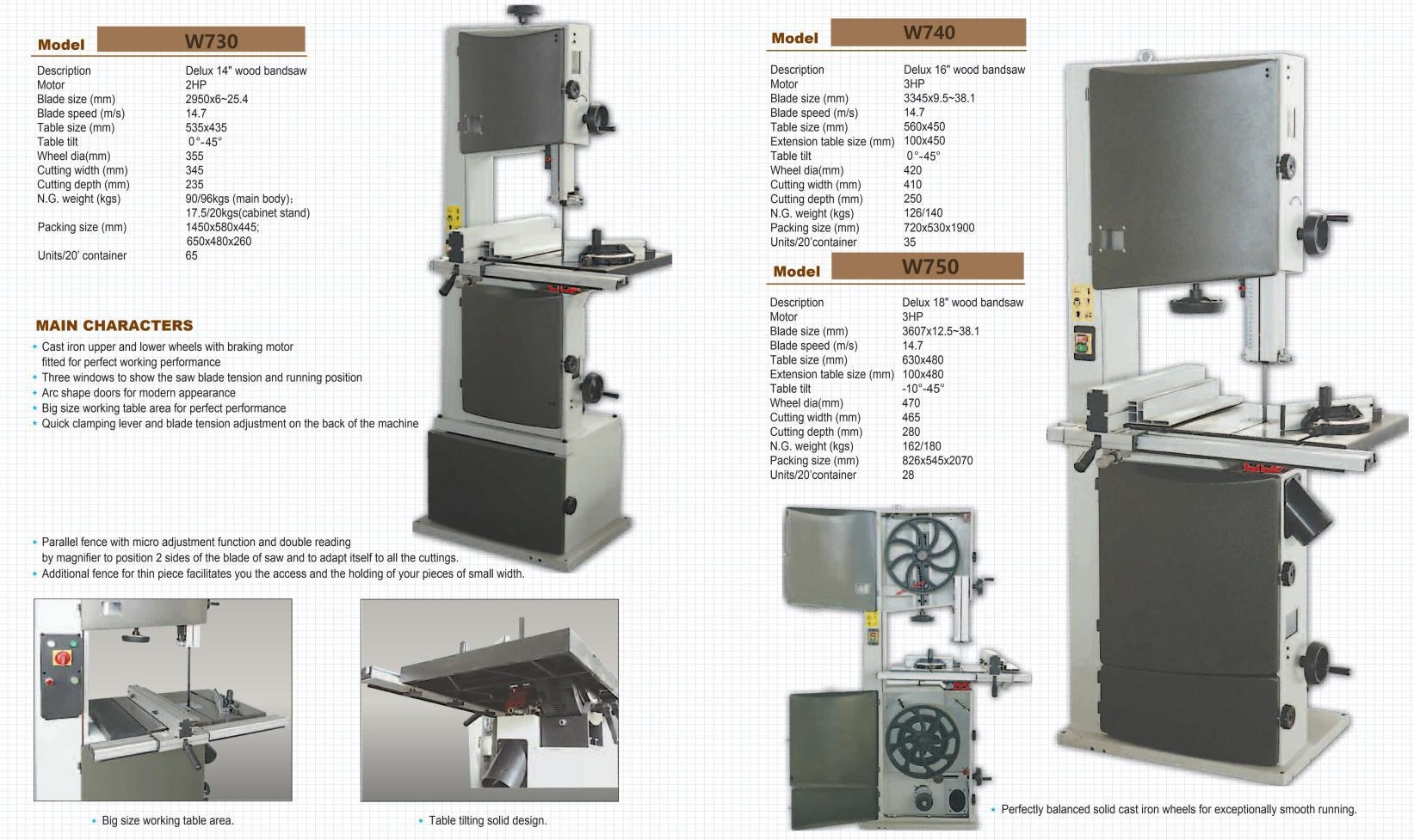 Woodworking bandsaws – Các loại máy cưa gỗ đứng W730 W740 W750