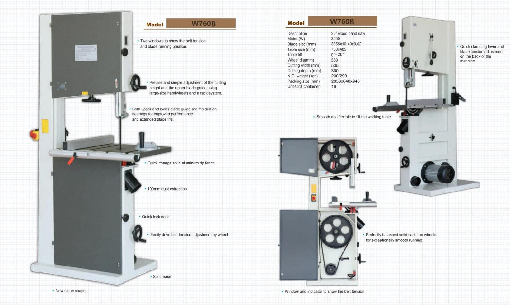 Woodworking bandsaws – Các loại máy cưa gỗ đứng W760 W770 W780