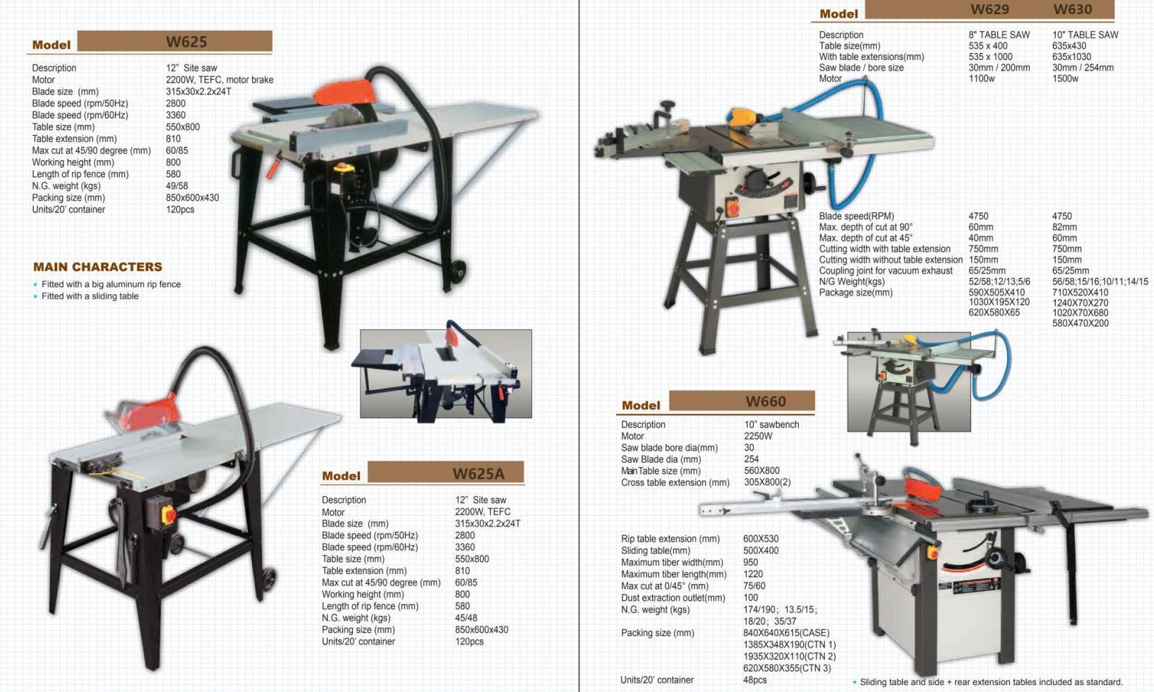 Woodworking table saws, panel saws – Các loại máy cưa gỗ bàn, máy cưa gỗ ngang W625 W625A W629 W630 W660
