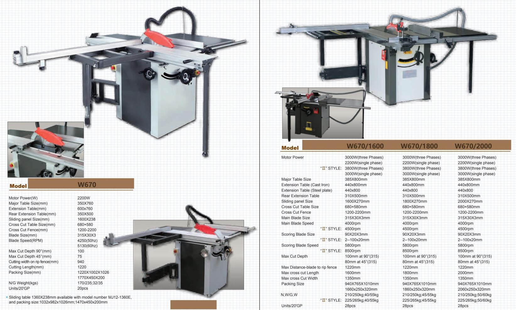 Woodworking table saws, panel saws – Các loại máy cưa gỗ bàn, máy cưa gỗ ngang W670