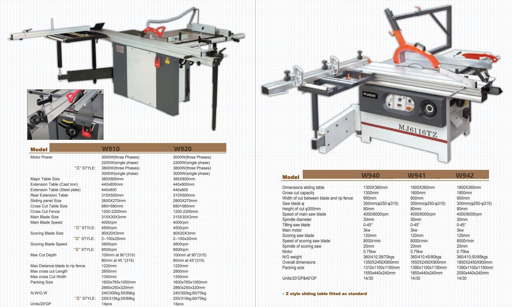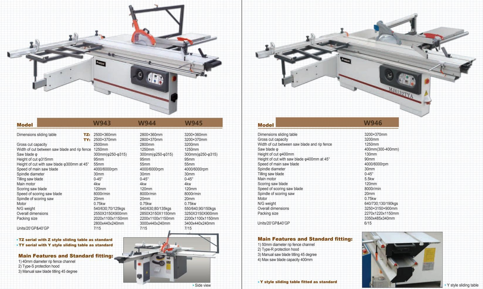 Woodworking table saws, panel saws – Các loại máy cưa gỗ bàn, máy cưa gỗ ngang W943 W944 W945 W946